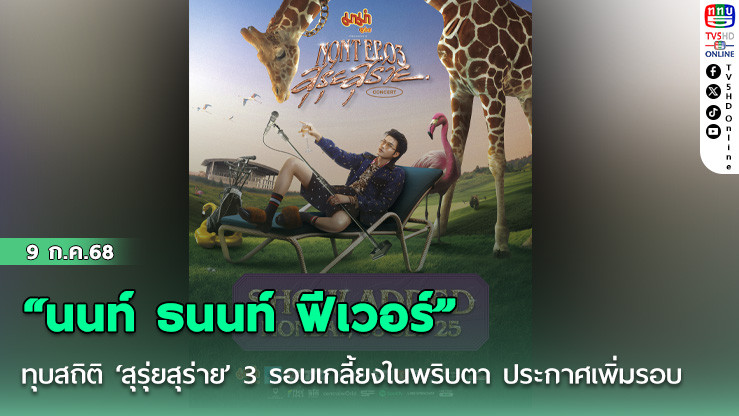 สร้างปรากฏการณ์บัตรคอนเสิร์ตหมดเกลี้ยง (SOLD OUT) อีกครั้ง สำหรับศิลปินหนุ่มขวัญใจมหาชน “นนท์-ธนนท์ จำเริญ” ที่ล่าสุดคอนเสิร์ตใหญ่แห่งปี “มาม่า Presents NONT EP.03 สุรุ่ยสุร่าย CONCERT” ได้รับกระแสตอบรับอย่างถล่มทลาย บัตรคอนเสิร์ตทั้ง 3 รอบการแสดงถูกจำหน่ายหมดเกลี้ยงในเวลาอันรวดเร็ว หลังเปิดขายอย่างเป็นทางการเมื่อเช้าวันเสาร์ที่ 5 ก.ค. ที่ผ่านมา ทำให้ทางผู้จัดต้องประกาศเพิ่มรอบที่ 4 ตามคำเรียกร้องทันที