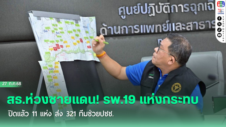 27 กรกฎาคม 2568 – นายแพทย์วีรวุฒิ อิ่มสำราญ รองปลัดกระทรวงสาธารณสุข ได้เปิดเผยถึงสถานการณ์ด้านการแพทย์และสาธารณสุข กรณีความไม่สงบในพื้นที่ชายแดนไทย-กัมพูชา โดยระบุว่า โรงพยาบาลในพื้นที่ได้รับผลกระทบรวมทั้งสิ้น 19 แห่ง และต้องประกาศปิดให้บริการชั่วคราวแล้วถึง 11 แห่ง กระทรวงสาธารณสุขได้เร่งวางระบบดูแลประชาชนอย่างเต็มที่ โดยได้จัดทีมปฏิบัติการฉุกเฉินทางการแพทย์ ทีมอนามัยสิ่งแวดล้อม และทีมเยียวยาจิตใจ ซึ่งเพิ่มจำนวนเป็น 321 ทีม เพื่อรองรับการดูแลประชาชนในทุกมิติ หากพื้นที่ใดต้องการสนับสนุนเพิ่มเติม สามารถประสานงานมายังส่วนกลางที่กองสาธารณสุขฉุกเฉินได้ทันที