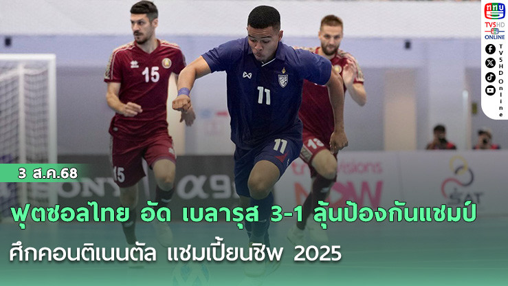 วันที่ 2 สิงหาคม 2568 เวลา 20.00 น. ณ ยิมเนเซียม สนามกีฬากลางจังหวัดนนทบุรี การแข่งขัน Continental Futsal Championship 2025 รอบรองชนะเลิศ ฟุตซอลชายทีมชาติไทย อันดับ 11 ของโลก ลงสนามพบกับ เบลารุส ทีมอันดับ 30 ของโลก