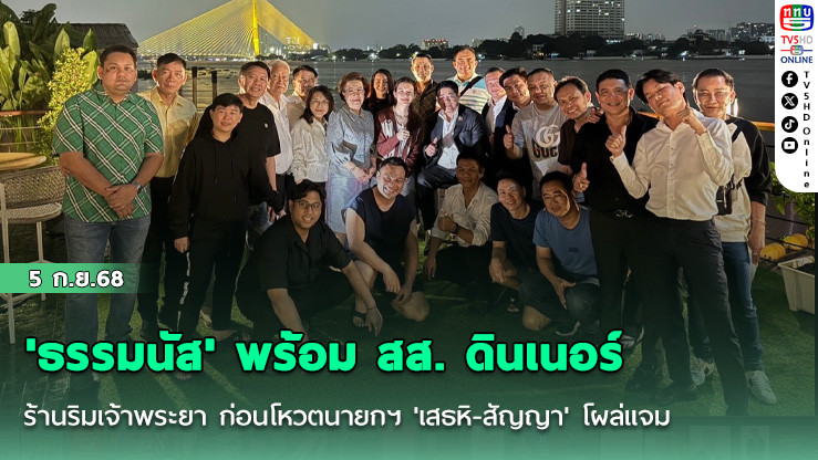 'ธรรมนัส' พร้อม สส. ดินเนอร์ร้านริมเจ้าพระยา ก่อนโหวตนายกฯ 'เสธหิ-สัญญา' โผล่แจม