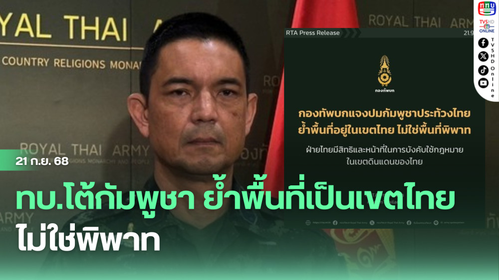 กองทัพบกชี้แจงปมกัมพูชาประท้วงไทย ย้ําพื้นที่อยู่ในเขตไทย ไม่ใช่พื้นที่พิพาท