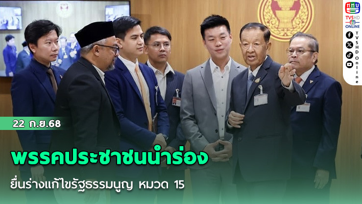 (22 กันยายน) ที่อาคารรัฐสภา พรรคประชาชน นําโดย ณัฐพงษ์ เรืองปัญญาวุฒิ สส. แบบบัญชีรายชื่อ หัวหน้าพรรคประชาชน และ พริษฐ์ วัชรสินธุ สส. แบบบัญชีรายชื่อ โฆษกพรรคประชาชน เข้ายื่นร่างแก้ไขรัฐธรรมนูญ หมวด 15 ฉบับพรรคประชาชน ต่อ วันมูหะมัดนอร์ มะทา ประธานรัฐสภา และประธานสภาผู้แทนราษฎร