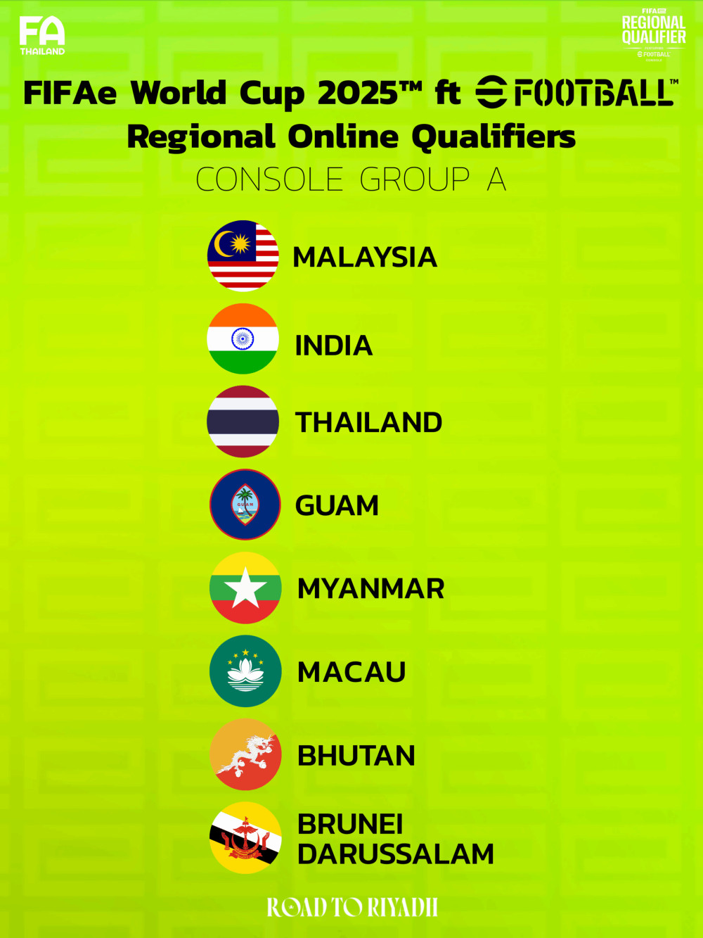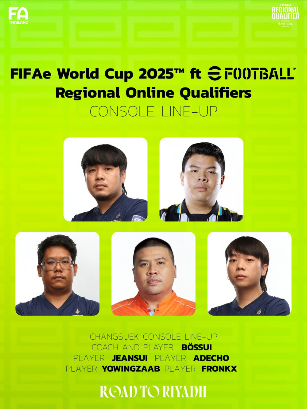 สมาคมกีฬาฟุตบอลแห่งประเทศไทยฯ ตอบรับการเข้าร่วมศึก FIFAe World Cup 2025 ft. eFootball ประเภท Console ในรอบคัดเลือกโซนเอเชียตะวันออกและโอเชียเนีย (Regional Online Qualifier) ซึ่งจะจัดขึ้นระหว่างวันที่ 24–27 กันยายน 2568 โดยมี 16 ชาติเข้าร่วมดวลฝีมือเพื่อแย่ง 3 โควตาไปสู่รอบสุดท้าย ณ ประเทศซาอุดีอาระเบีย