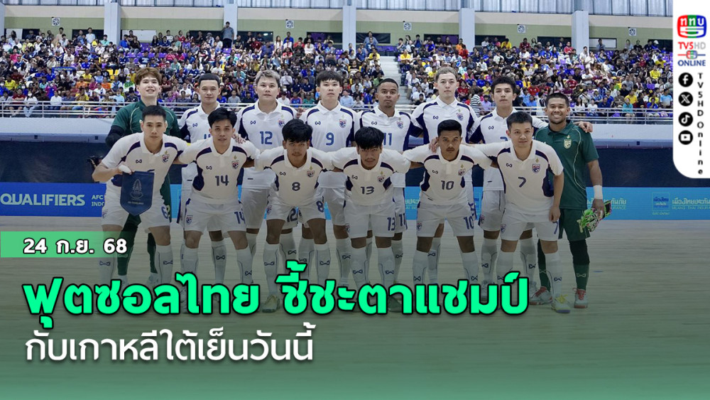 โปรแกรมการแข่งขันฟุตซอลชิงแชมป์เอเชีย 2026 รอบคัดเลือก กลุ่มบี วันพุธที่ 24 กันยายน 68 ฟุตซอลไทย พบ เกาหลีใต้ ที่โรงยิมเนเซี่ยม อบจ.นนทบุรี เวลา 19.30 น. เข้าชมฟรี ถ่ายทอดสดทาง Facebook Youtube ช้างศึก, Futsal Thailand, Tsports7 และ TrueVisions NOW