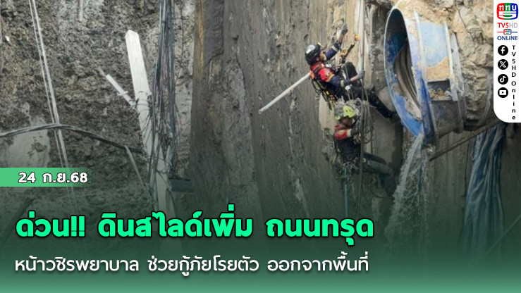 ด่วน!! ดินสไลด์เพิ่ม ถนนทรุด หน้าวชิรพยาบาล ช่วยกู้ภัยโรยตัว ออกจากพื้นที่