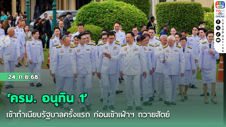 24 กันยายน 2568 ตั้งแต่ช่วง 13.00 น. เป็นต้นมา คณะรัฐมนตรี (ครม.) ชุดใหม่ทยอยเดินทางมาตึกสันติไมตรี เพื่อตรวจ ATK ที่ห้องสีฟ้า และถ่ายรูปเดี่ยวทําบัตรประจําตัวรัฐมนตรี ที่ห้องสีเหลือง อาคารสันติไมตรี ทําเนียบรัฐบาล ก่อน อนุทิน ชาญวีรกูล นายกรัฐมนตรี และรัฐมนตรีว่าการกระทรวงมหาดไทย จะนํา ครม. ทั้งคณะเดินทางเข้าเฝ้าฯ ถวายสัตย์ปฏิญาณ ณ พระที่นั่งอัมพรสถาน พระราชวังดุสิต