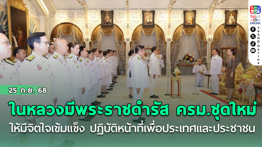 วานนี้เวลา 18.51 น. 24 กันยายน 2568 พระบาทสมเด็จพระเจ้าอยู่หัว และสมเด็จพระนางเจ้าฯ พระบรมราชินี เสด็จออก ณ พระที่นั่งอัมพรสถาน พระราชวังดุสิต พระราชทานพระบรมราชวโรกาสให้ นายอนุทิน ชาญวีรกูล นายกรัฐมนตรี นํา คณะรัฐมนตรี ซึ่งทรงพระกรุณาโปรดเกล้าฯ แต่งตั้ง เฝ้าฯ ถวายสัตย์ปฏิญาณก่อนเข้ารับหน้าที่
