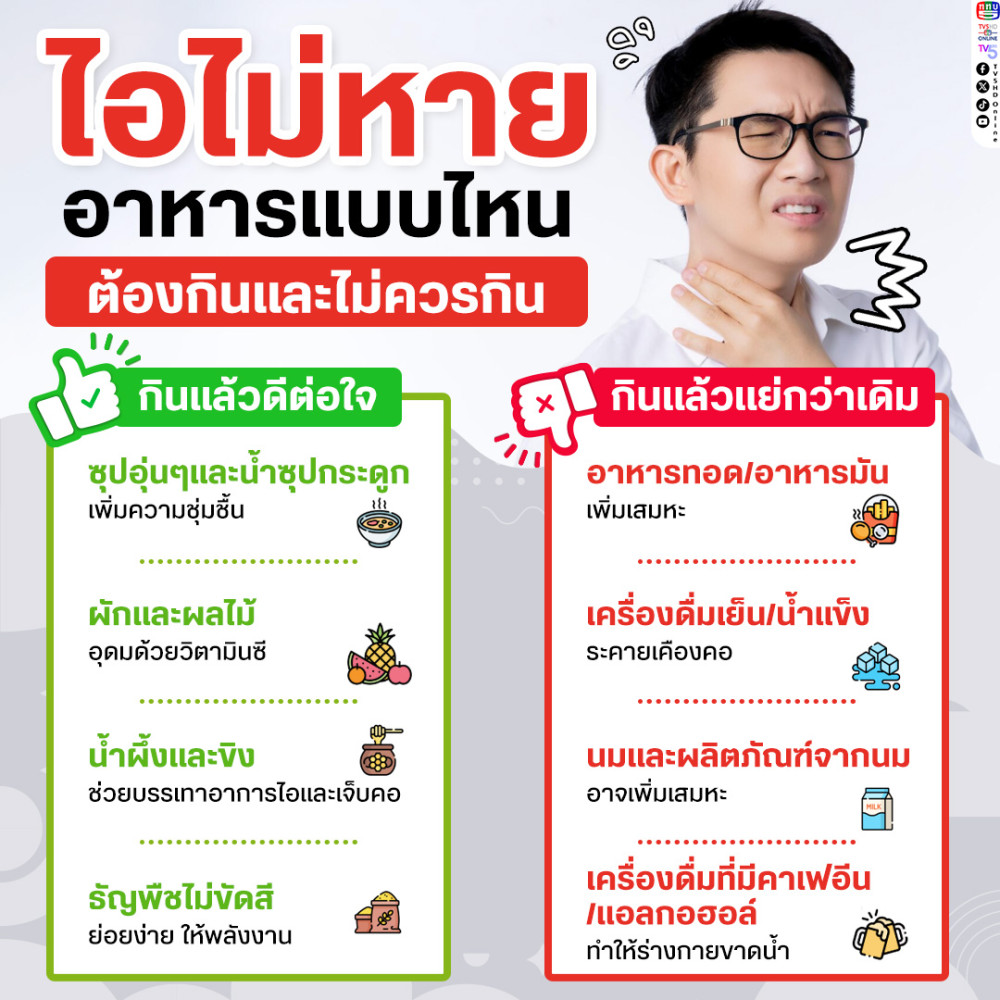 เมื่อมีอาการไอ การเลือกกินอาหารที่เหมาะสมจะช่วยบรรเทาอาการและฟื้นตัวได้เร็วขึ้น ส่วนอาหารที่ควรงดเว้นจะช่วยไม่ให้อาการแย่ลงไปกว่าเดิม