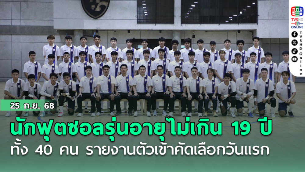 ณ สนามฟุตซอลชั้น 2 อาคาร FA Thailand นักฟุตซอลทีมชาติไทยรุ่นอายุไม่เกิน 19 ปี ทั้งหมด 40 คน รายงานตัวเข้าคัดเลือก เพื่อเตรียมความพร้อมในรายการ ASEAN U19 FUTSAL CHAMPIONSHIP 2025 ระหว่างวันที่ 22-28 ธันวาคม 2568 ที่อาคารโรงยิมเนเซียม อบจ.นนทบุรี
