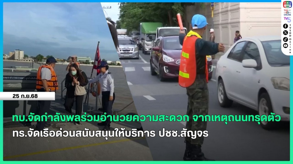 กองทัพบกจัดกําลังพลร่วมอํานวยความสะดวก จากเหตุถนนทรุดตัว + กองทัพเรือจัดเรือด่วนสนับสนุนให้บริการ ปชช.สัญจร