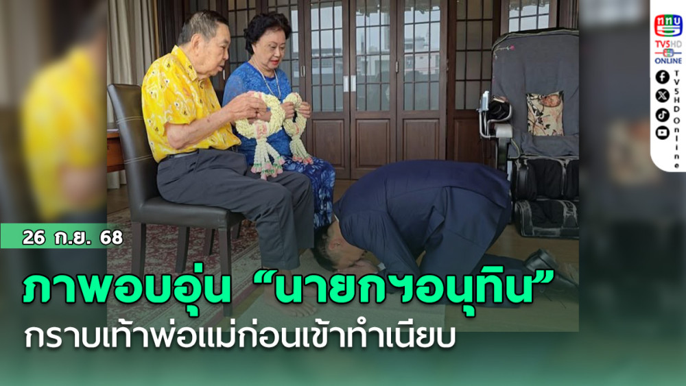นายกรัฐมนตรี "อนุทิน" เผยภาพก้มกราบเท้าพ่อแม่ ก่อนปฏิบัติหน้าที่นายกรัฐมนตรี เตรียมแถลงนโยบายต่อรัฐสภา 29–30 ก.ย.นี้