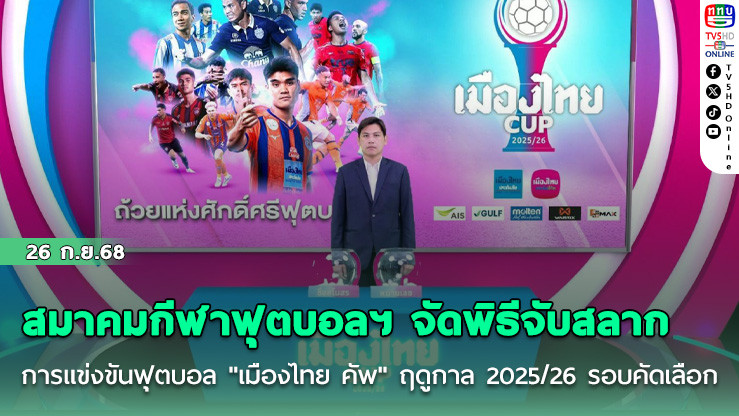 สมาคมกีฬาฟุตบอลแห่งประเทศไทยฯ จัดพิธีจับสลากประกบคู่การแข่งขันฟุตบอล เมืองไทย คัพ ฤดูกาล 2025/26 รอบคัดเลือก โดยได้รับเกียรติจาก คุณ เอกพล พลนาวี เลขาธิการสมาคมกีฬาฟุตบอลแห่งประเทศไทยฯ มาเป็นประธานในพิธีการจับสลากในครั้งนี้