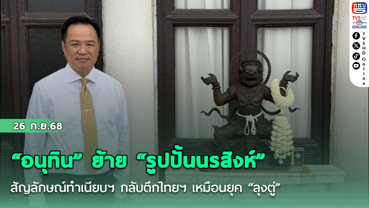 “อนุทิน” ย้าย “รูปปั้นนรสิงห์” สัญลักษณ์ทําเนียบฯ กลับตึกไทยฯ เหมือนยุค “ลุงตู่” หลัง “เศรษฐา” ย้ายไปไว้ตึกแสงอาทิตย์ตั้ง พ.ย.66