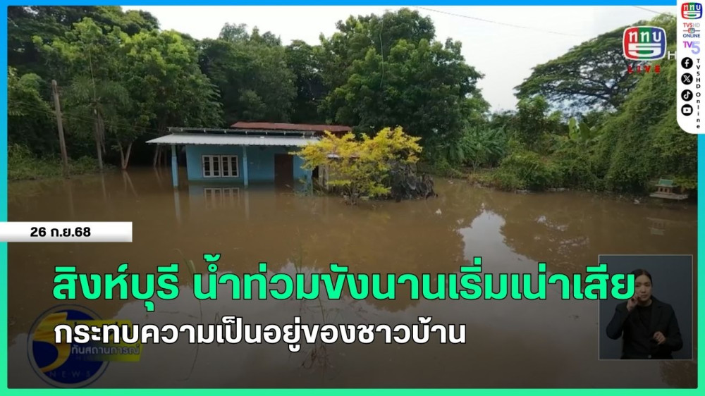 สิงห์บุรี น้ําท่วมขังนานเริ่มเน่าเสีย กระทบความเป็นอยู่ของชาวบ้าน