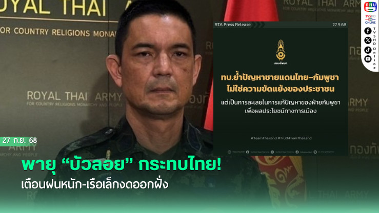 กองทัพบกย้ําข้อเท็จจริง ปัญหาชายแดนไทย–กัมพูชา ไม่ใช่ความขัดแย้งของประชาชน แต่เป็นผลจากการละเลยและเจตนาของฝ่ายกัมพูชาในการสร้างปัญหาซ้ําซากเพื่อผลประโยชน์ทางการเมือง