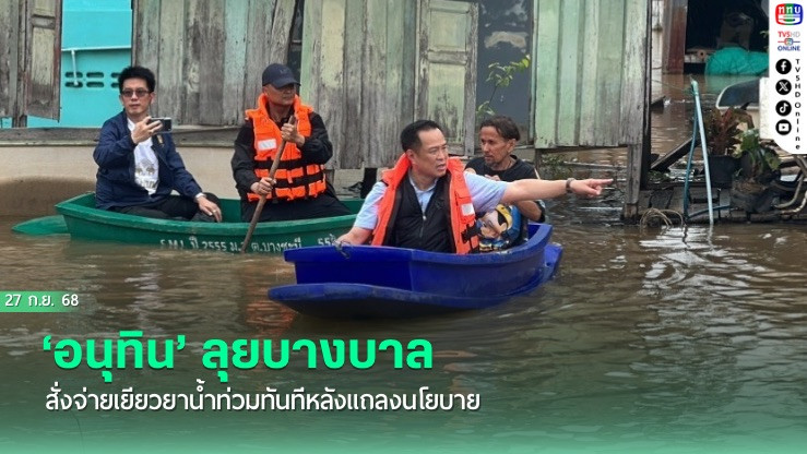 27 กันยายน 2568 - เมื่อเวลา 10.30 น. ที่ อ.บางบาล จ.พระนครศรีอยุธยา นายอนุทิน ชาญวีรกูล นายกรัฐมนตรีและรมว.มหาดไทย ให้สัมภาษณ์ภายหลังลงพื้นที่ติดตามสถานการณ์น้ําท่วม อ.บางบาล จ.พระนครศรีอยุธยา ว่า ตอนนี้เกิดสถานการณ์น้ําท่วม โดยได้สั่งการเร่งให้ดําเนินการจ่ายเงินเยียวยาตามเกณฑ์ของกรมป้องกันและบรรเทาสาธารณภัย (ปภ.) เนื่องจากช่วงที่ผ่านมาได้มีการเปลี่ยนรัฐบาล ทําให้ล่าช้าไป ดังนั้นหลังการแถลงนโยบายต่อรัฐสภาแล้ว ก็จะดําเนินการทันที เพราะความทุกข์ร้อนของประชาชนรอนานไม่ได้