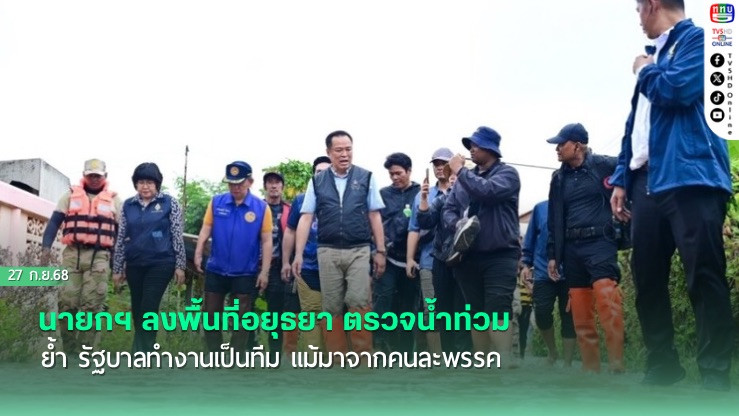 นายกฯ ลงพื้นที่อยุธยา ตรวจน้ําท่วม ย้ํา รัฐบาลทํางานเป็นทีม แม้มาจากคนละพรรค พร้อมเรียก สส.ปชน. ร่วมขึ้นเวทีด้วย เผย เร่งรัดสร้างคลองระบายน้ํา บางบาล-บางไทร เสร็จ ปี 69 เดินหน้าพัฒนาระบบชลประทาน
