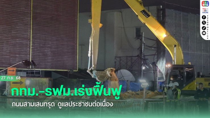 วันที่ 27 กันยายน 2568 - กทม. และ การรถไฟฟ้าขนส่งมวลชนแห่งประเทศไทย (รฟม.) เปิดเผยความคืบหน้าการฟื้นฟูถนนสามเสนทรุด พร้อมมาตรการดูแลประชาชนอย่างรอบด้าน หลังกรมป้องกันและบรรเทาสาธารณภัยประกาศให้แขวงวชิรพยาบาลและแขวงดุสิตเป็นพื้นที่ประสบภัยพิบัติฉุกเฉิน