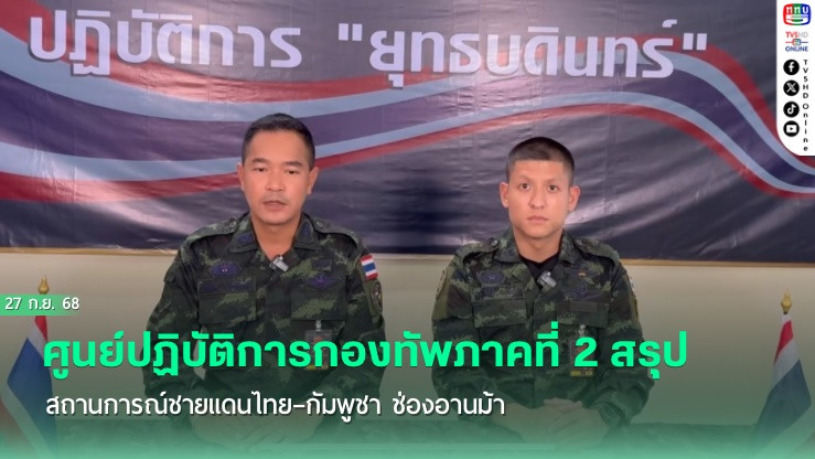 ศูนย์ปฏิบัติการกองทัพภาคที่ 2 สรุปสถานการณ์ชายแดนไทย–กัมพูชา ช่องอานม้า ย้ําฝ่ายกัมพูชายิงยั่วยุ–ตั้งกล้องถ่ายหวังใช้โจมตีไทยในเวทีนานาชาติ
