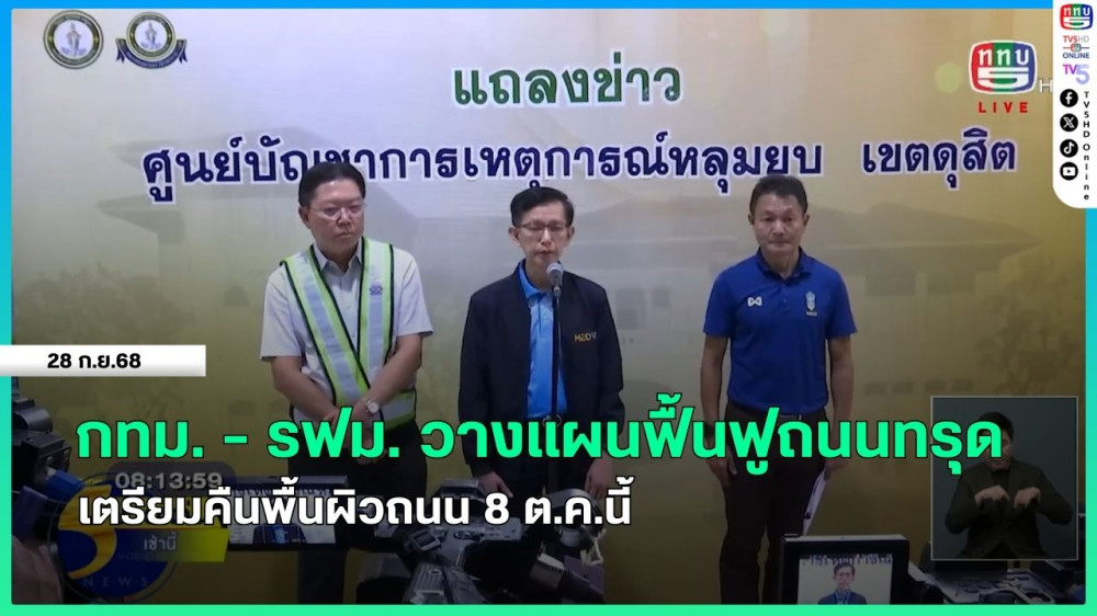 กทม. - รฟม. วางแผนฟื้นฟูถนนทรุด เตรียมคืนพื้นผิวถนน 8 ต.ค.นี้
