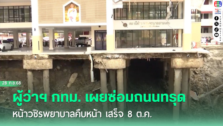 วันที่ 28 กันยายน 2568 - นายชัชชาติ สิทธิพันธุ์ ผู้ว่าราชการกรุงเทพมหานคร เปิดเผยความคืบหน้าการแก้ไขปัญหาถนนทรุดบริเวณหน้าโรงพยาบาลวชิรพยาบาล เขตดุสิต ว่า ขณะนี้สถานการณ์เป็นไปตามแผนและดําเนินการอย่างเรียบร้อย โดยเมื่อวานนี้ได้มีการพ่น ช็อตครีต เพื่อเสริมความแข็งแรงของดินบริเวณใต้สถานีตํารวจนครบาลสามเสน ใช้คอนกรีตประมาณ 9 คิว รวมปริมาณคอนกรีตที่เททั้งหมดแล้วกว่า 1,105 ลูกบาศก์เมตร ซึ่งถือว่าขั้นตอนการเสริมกําลังโครงสร้างแล้วเสร็จเรียบร้อย