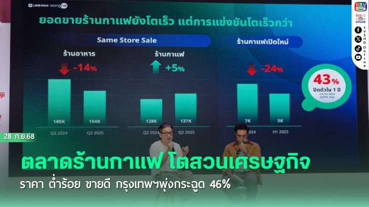ตลาดร้านกาแฟ โตสวนเศรษฐกิจ ราคา ต่ําร้อย ขายดี กรุงเทพฯพุ่งกระฉูด 46%