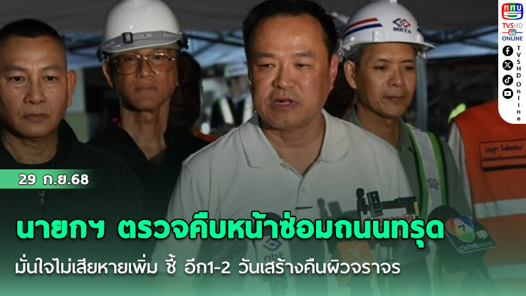 นายกฯ ตรวจคืบหน้าซ่อมถนนทรุด มั่นใจไม่เสียหายเพิ่ม ชี้ อีก1-2 วันเสร้างคืนผิวจราจร