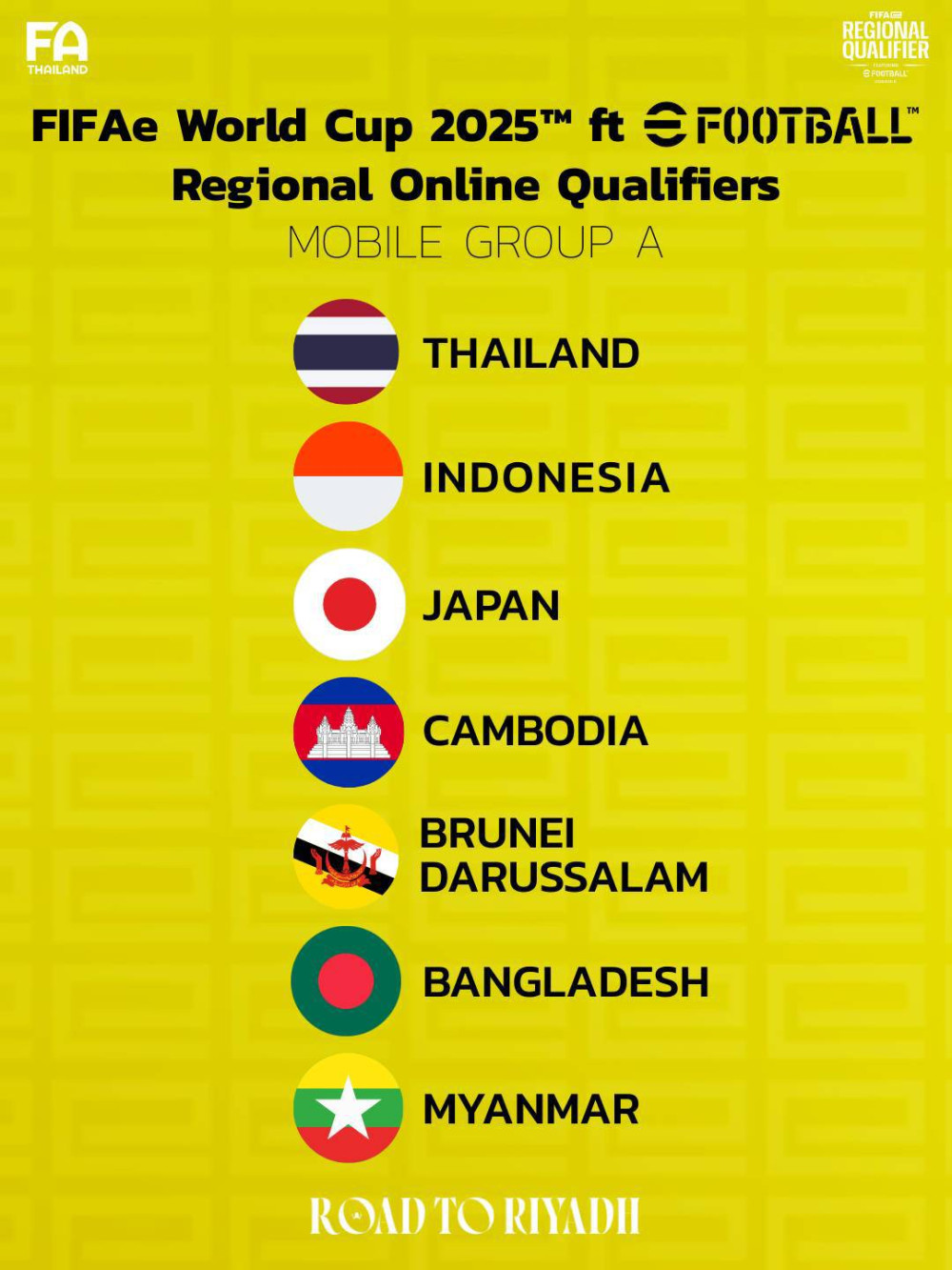 ซึ่งผลการจับสลาก ไทย อยู่ในกลุ่ม เอ ร่วมกับ อินโดนีเซีย, ญี่ปุ่น, กัมพูชา, บรูไน, บังกลาเทศ และ เมียนมา