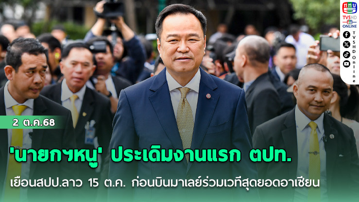 02 ต.ค.2568 - ผู้สื่อข่าวรายงานภารกิจต่างประเทศของ นายอนุทิน ชาญวีรกูล นายกรัฐมนตรีและรัฐมนตรีว่าการกระทรวงมหาดไทย ทั้งในการเยือนและประชุมเวทีนานาชาติต่างๆนั้น เบื้องต้นนายกฯจะเริ่มที่การเยือนสาธารณรัฐประชาธิปไตยประชาชนลาว (สปป.ลาว) ในวันที่ 15 ต.ค.