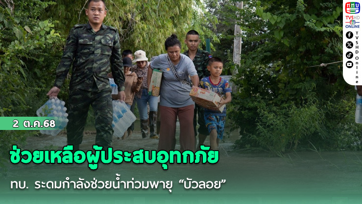 กองทัพบกระดมกําลังพล–ยุทโธปกรณ์เต็มกําลัง เข้าช่วยเหลือประชาชนประสบอุทกภัยจากพายุโซนร้อน “บัวลอย” ทั้งภาคเหนือ ภาคกลาง และอีสาน พร้อมตั้งศูนย์พักพิง–ซ่อมถนน–จัดรถครัวสนาม