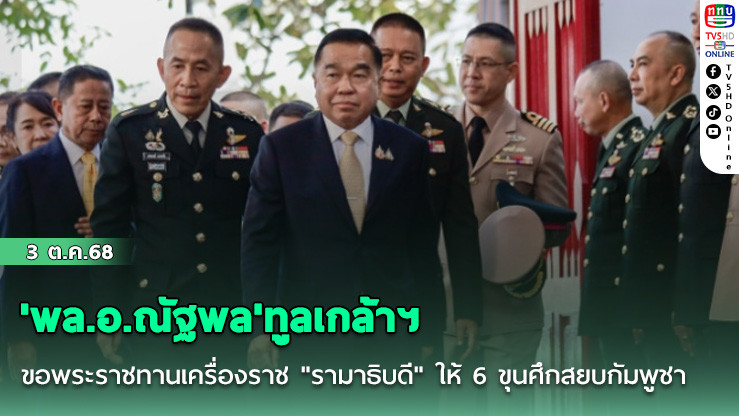 'พล.อ.ณัฐพล'ทูลเกล้าฯ ขอพระราชทานเครื่องราช ชั้นรามาธิบดี 6 ขุนศึกสยบกัมพูชา 'ผบบ.ทสส. ผบ.ทบ. ผบ.ทอ. -แม่ทัพกุ้ง-ผบ.กกล.สุรนารี - ผบ.พล.รพศ.1' ยึดภูมะเขือ พร้อมขอเหรียญกล้าหาญประดับธงชัยเฉลิมพล