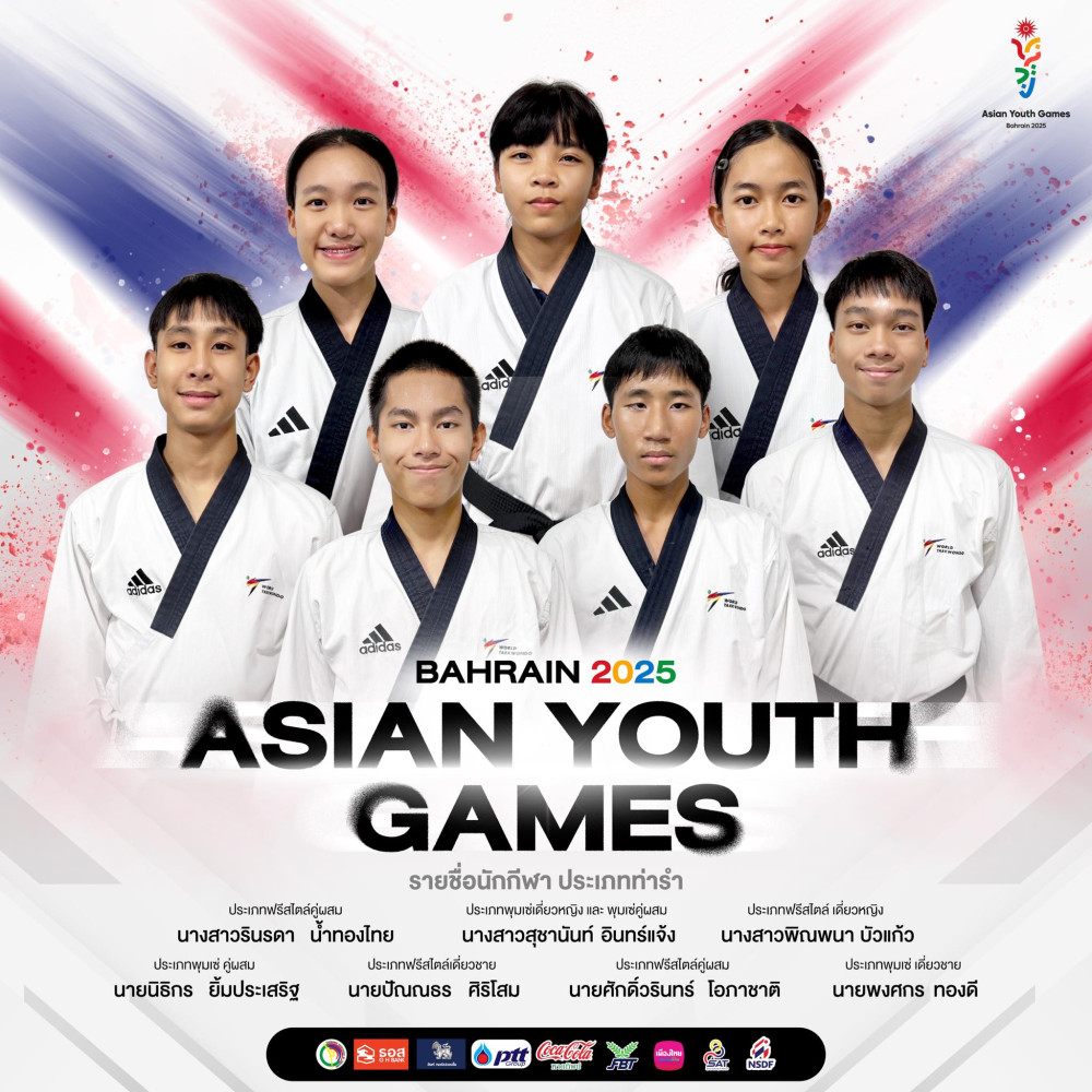 สมาคมกีฬาเทควันโดแห่งประเทศไทย ภายใต้การนําของ "บิ๊กเอ" ผศ.พิมล ศรีวิกรม์ เปิดรายชื่อนักกีฬาเยาวชนทีมชาติไทย ชุดลุยศึก เอเชียนยูธเกมส์ 2025 ที่จะจัดขึ้น ณ กรุงมานามา ประเทศบาห์เรน ระหว่างวันที่ 22-31 ตุลาคม 2568 โดยไทยส่งนักกีฬาร่วมชิงชัยทั้ง 2 ประเภท ได้แก่ ประเภทต่อสู้ (เคียวรูกิ) และ ประเภทท่ารํา (พุมเซ่)