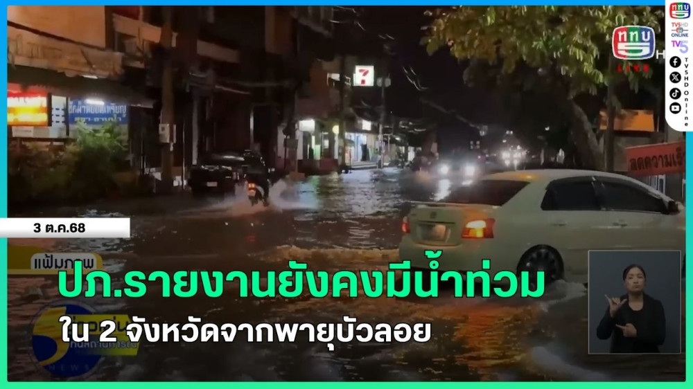 ปภ.รายงานยังคงมีน้ําท่วมใน 2 จังหวัดจากพายุบัวลอย
