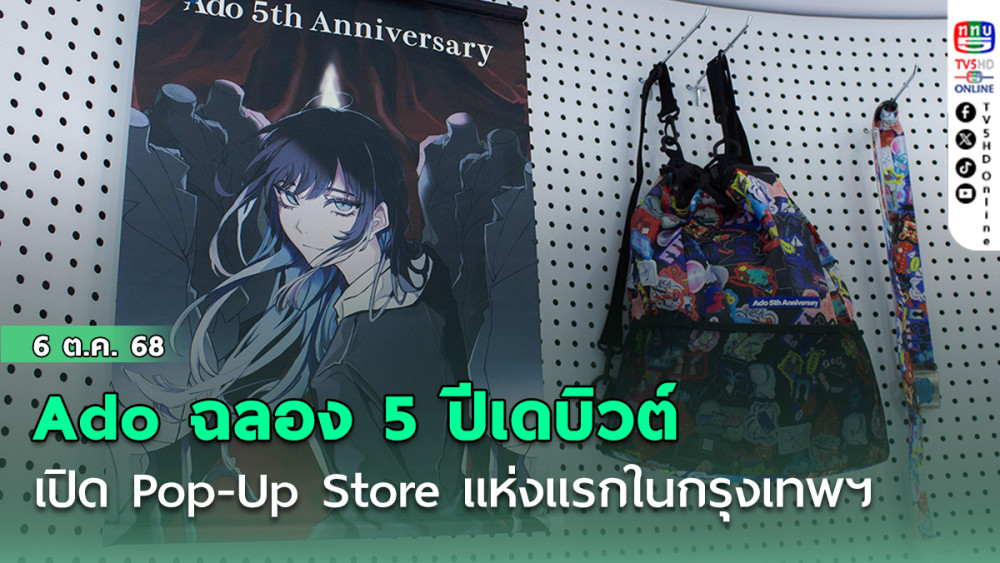 Ado (อาโดะ) ซูเปอร์สตาร์นักร้องปริศนาจากญี่ปุ่น เตรียมมอบของขวัญสุดพิเศษให้กับแฟนเพลงทั่วโลก เพื่อร่วมฉลองโอกาสครบรอบ 5 ปีของการเดบิวต์ ด้วยการเปิดตัว "Ado 5th Anniversary POP-UP STORE in BANGKOK" ซึ่งจะจัดขึ้นระหว่าง ณ KPOPMERCH Flagship Store CentralwOrld ชั้น 5 โซน Atrium ตั้งแต่วันนี้ถึงวันที่ 12 ตุลาคม 2568