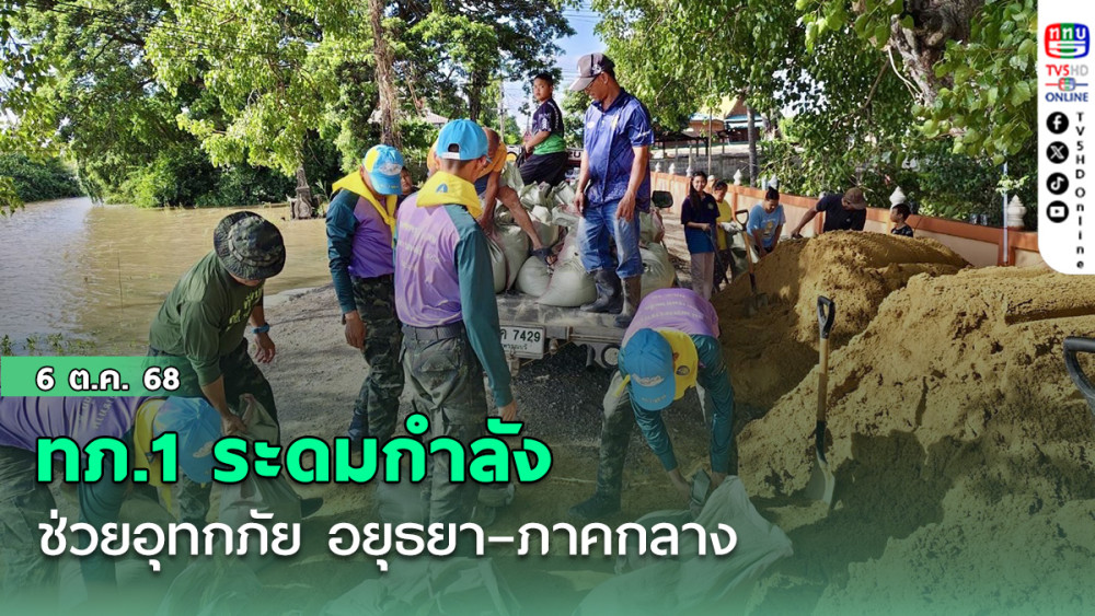 กองทัพภาคที่ 1 ระดมสรรพกําลังร่วม ปภ. ส่วนราชการ และจิตอาสา เร่งช่วยผู้ประสบภัยในอยุธยา–ภาคกลาง หลังแมตโมหนุนมวลน้ําจากตอนบน เพิ่มระบายน้ําเขื่อนเจ้าพระยา–ป่าสักชลสิทธิ์