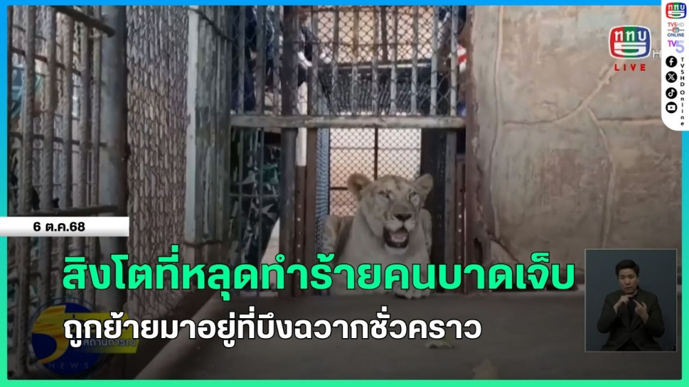 สิงโตที่หลุดทําร้ายคนบาดเจ็บ ถูกย้ายมาอยู่ที่บึงฉวากชั่วคราว
