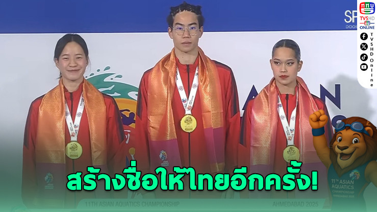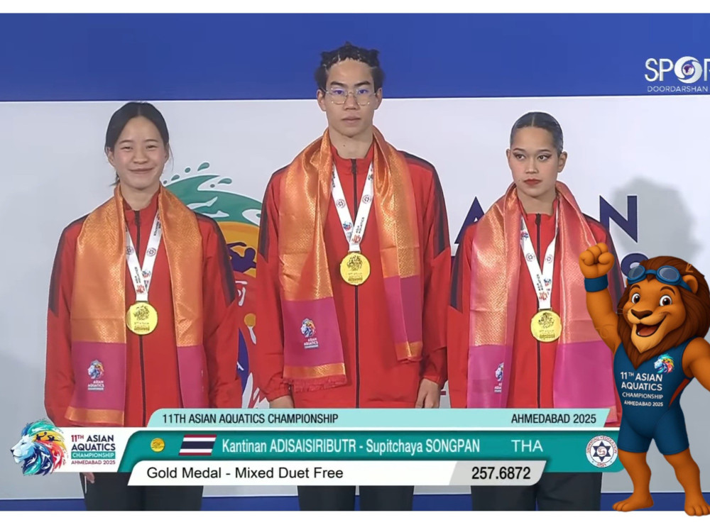สร้างชื่อให้ไทยอีกครั้ง! 3 นักกีฬาว่ายน้ําลีลาทีมชาติไทย — กันตินันท์ อดิศัยสิริบุตร, พงศ์พิมพร พงศ์สุวรรณ และสุพิชญา ทรงพันธุ์ — ผนึกพลังคว้าเหรียญทองที่ 2 อย่างสุดยอด ในการแข่งขันกีฬาทางน้ําชิงแชมป์เอเชีย ครั้งที่ 11 ที่ประเทศอินเดีย