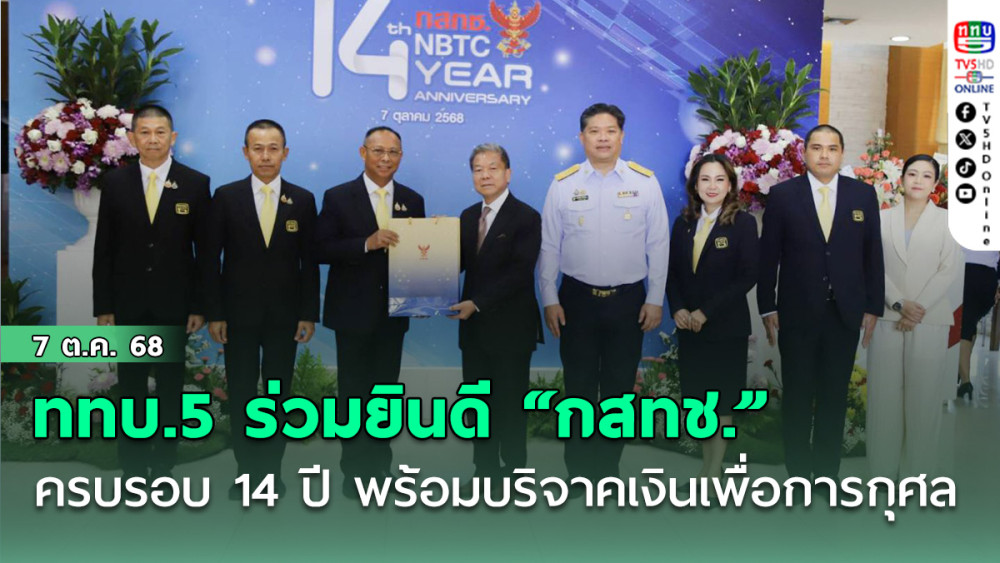 วันที่ 7 ตุลาคม 2568 - สถานีวิทยุโทรทัศน์กองทัพบก ร่วมแสดงความยินดีและมอบเงินบริจาคเพื่อการกุศล ในโอกาสวันคล้ายวันสถาปนา สํานักงานคณะกรรมการกิจการกระจายเสียง กิจการโทรทัศน์ และกิจการโทรคมนาคมแห่งชาติ (กสทช.) ครบรอบ 14 ปี