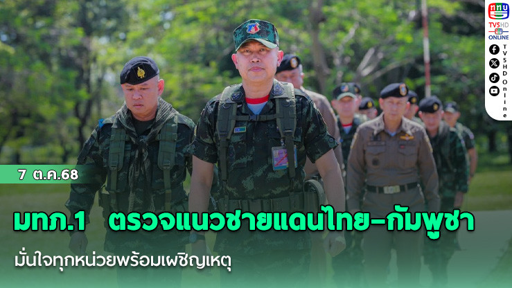 วันที่ 7 ตุลาคม 2568 - พลโท วรยส เหลืองสุวรรณ แม่ทัพภาคที่ 1 / ผู้บัญชาการศูนย์ปฏิบัติการกองทัพภาคที่ 1 (ผบ.ศปก.ทภ.1) ลงพื้นที่ชายแดนไทย–กัมพูชา จังหวัดสระแก้ว เพื่อติดตามสถานการณ์ความมั่นคงในพื้นที่ และตรวจเยี่ยมความพร้อมการปฏิบัติงานของหน่วยทหาร ร่วมกับเจ้าหน้าที่ตํารวจ ฝ่ายปกครอง และส่วนราชการที่เกี่ยวข้อง