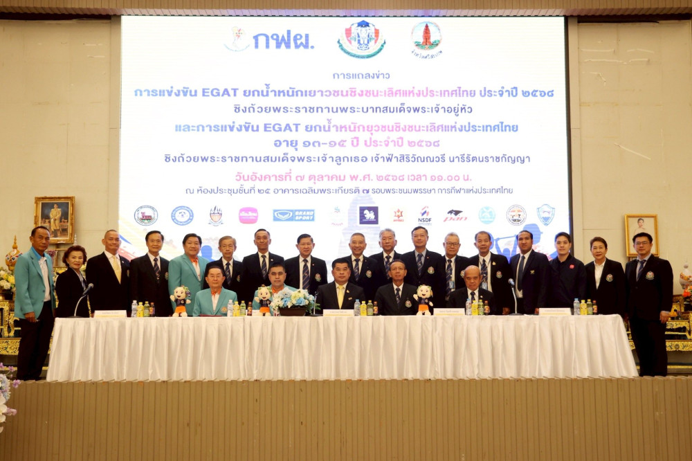 สมาคมกีฬายกน้ําหนักสมัครเล่นแห่งประเทศไทย ร่วมกับ การไฟฟ้าฝ่ายผลิตแห่งประเทศไทย (กฟผ.) และ จังหวัดศรีสะเกษ เตรียมจัดการแข่งขันยกน้ําหนักเยาวชนและยุวชนชิงชนะเลิศแห่งประเทศไทย ประจําปี 2568 ภายใต้ชื่อรายการ EGAT ยกน้ําหนักเยาวชนชิงชนะเลิศแห่งประเทศไทย ชิงถ้วยพระราชทาน พระบาทสมเด็จพระเจ้าอยู่หัว และรายการ EGAT ยกน้ําหนักยุวชนชิงชนะเลิศแห่งประเทศไทย ชิงถ้วยพระราชทาน สมเด็จพระเจ้าลูกเธอ เจ้าฟ้าสิริวัณณวรี นารีรัตนราชกัญญา ระหว่างวันที่ 16–26 ตุลาคม 2568 ณ ห้องประชุมสโมสรพนักงานเทศบาลเมืองศรีสะเกษ