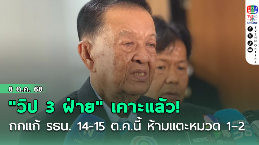 วิป 3 ฝ่าย เคาะ 14-15 ต.ค. ถกแก้ รธน. “วันนอร์” ยันเดินตามศาลฯ “ภราดร” มั่นใจ สมัยหน้าโหวตวาระ 2-3 ได้ทันที ฝ่ายค้านได้เวลาอภิปราย 10 ชั่วโมง “ส.ว.” ลั่นไม่แตะหมวด 1-2 ไม่มีปัญหา