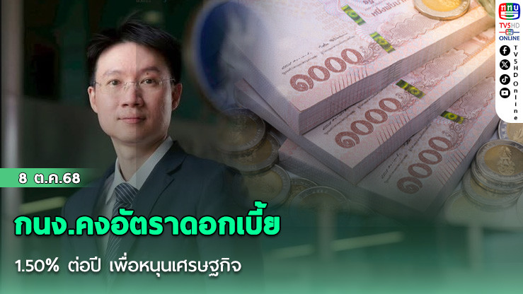 วันที่ 8 ตุลาคม 2568 - นายสักกะภพ พันธ์ยานุกูล เลขานุการคณะกรรมการนโยบายการเงิน (กนง.) ธนาคารแห่งประเทศไทย (ธปท.) เปิดเผยถึง ผลการประชุมคณะกรรมการนโยบายการเงิน (กนง.) ของธนาคารแห่งประเทศไทย มีมติ 5 ต่อ 2 เสียง คงอัตราดอกเบี้ยนโยบายไว้ที่ 1.50% ต่อปี โดยกรรมการส่วนใหญ่มองว่า ขณะนี้เศรษฐกิจไทยยังอยู่ในช่วงฟื้นตัวที่เปราะบาง การลดดอกเบี้ยเพิ่มเติมเร็วเกินไปอาจไม่สามารถรับประกันการส่งผ่านไปยังภาคธุรกิจและประชาชนได้เต็มที่ โดยเฉพาะในภาคส่งออกซึ่งเริ่มได้รับแรงกดดันจากมาตรการภาษีของสหรัฐ ขณะที่คณะกรรมการประเมินเศรษฐกิจไทยปี 2568 มีแนวโน้มขยายตัวที่ 2.2% และปี 2569 ที่ 1.6% ซึ่งอยู่ในกรอบเดิมของการประเมิน