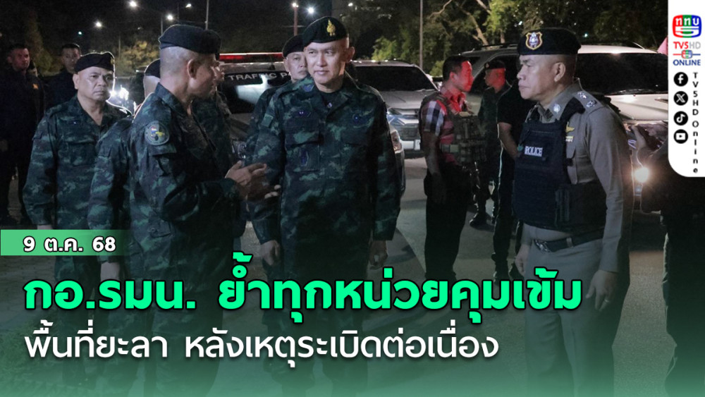 วันที่ 9 ตุลาคม 2568 - พลตรี ธรรมนูญ ไม้สนธิ์ โฆษกกองอํานวยการรักษาความมั่นคงภายในราชอาณาจักร (กอ.รมน.) เปิดเผยว่า เมื่อช่วงค่ําของวันที่ 8 ตุลาคม 2568 ได้เกิดเหตุระเบิดหลายจุดในเขตพื้นที่เมืองยะลา ซึ่งเจ้าหน้าที่ฝ่ายความมั่นคงทุกภาคส่วนได้เร่งเข้าควบคุมสถานการณ์ในทันที