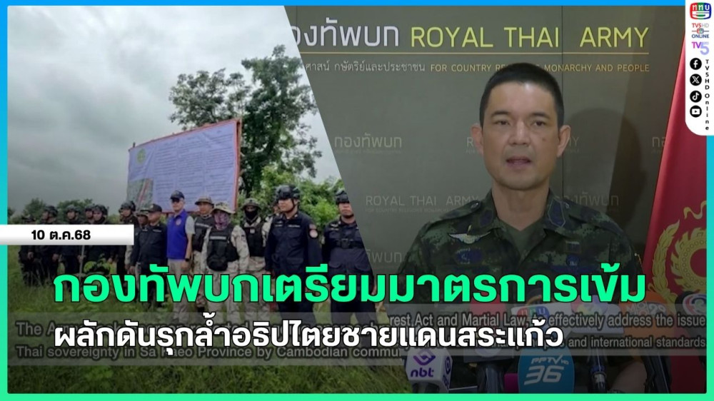 กองทัพบกเตรียมมาตรการเข้มผลักดันรุกล้ําอธิปไตยชายแดนสระแก้ว