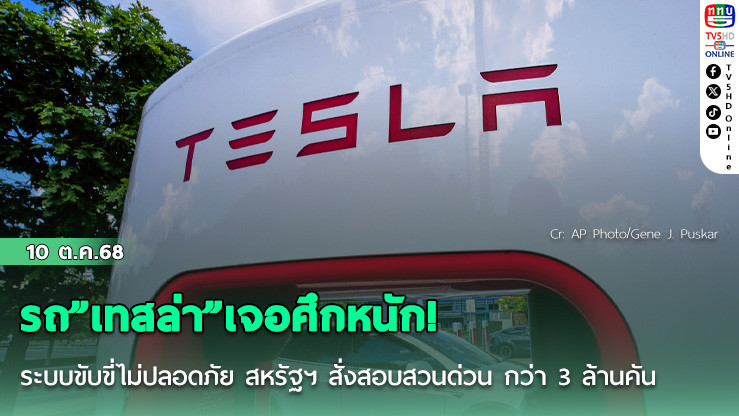 สหรัฐฯ เปิดฉากสอบสวนครั้งใหญ่ รถยนต์ "เทสลา" เกือบ 3 ล้านคัน หลังระบบขับขี่อัตโนมัติอัจฉริยะกลายเป็นตัวอันตรายบนท้องถนน พบประวัติละเมิดกฎจราจร 58 กรณี ตั้งแต่ฝ่าไฟแดง ขับสวนเลน ซ้ําเติมด้วยปมประตูขังเด็ก