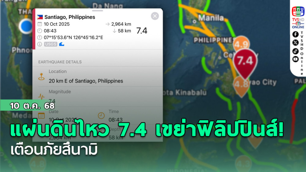 แผ่นดินไหว 7.4 เขย่าฟิลิปปินส์! เตือนภัยสึนามิ