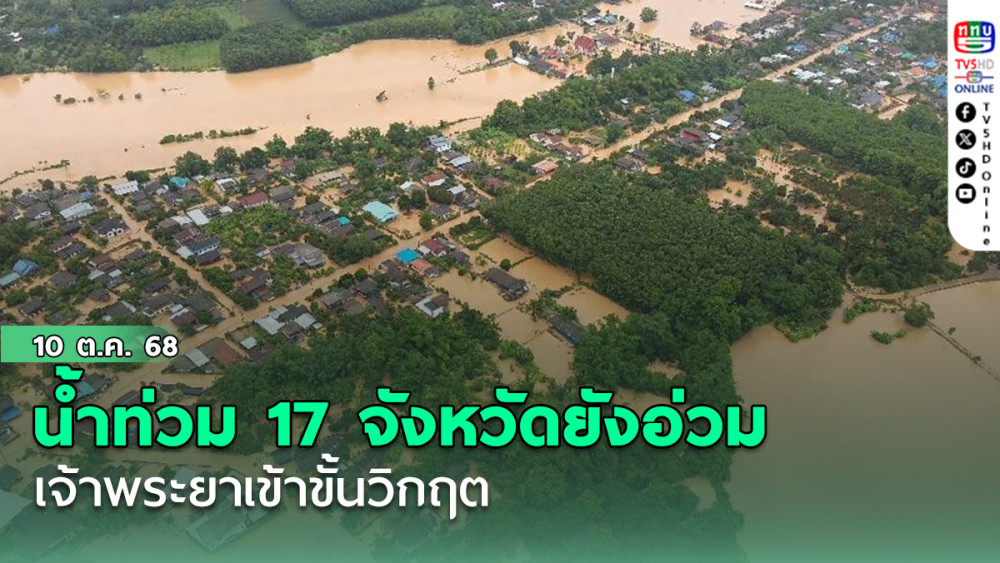 ปภ. เผย 4 ภาคทั่วไทย 17 จังหวัดยังเผชิญอุทกภัยหนัก กระทบกว่า 1 แสนครัวเรือน เสียชีวิตรวม 19 ราย ขณะที่ระดับน้ําเจ้าพระยาใต้สะพานพระราม 8 อยู่ในเกณฑ์ "น้ํามาก" กทม. เร่งเสริมแนว "ฟันหลอ" กระสอบทรายกว่า 2 แสนใบ รับมือมวลน้ําเหนือและน้ําทะเลหนุนสูงถึง 18 ต.ค. นี้