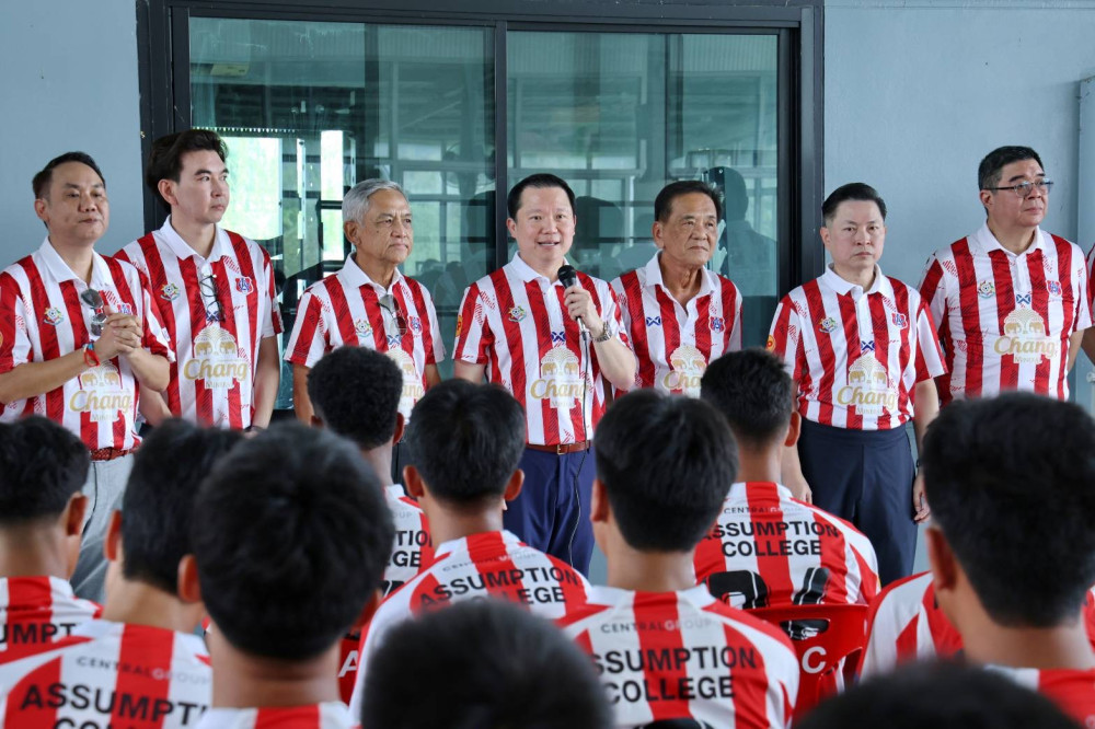 คุณฐาปน สิริวัฒนภักดี ประธานเจ้าหน้าที่บริหาร บริษัท ไทยเบฟเวอเรจ จํากัด (มหาชน) ประธานรุ่น AC107 พร้อมด้วย คุณธรรมศักดิ์ จิระวัฒนาศักดิ์ รองประธานรุ่น และพี่ ๆ ตัวแทนรุ่น AC 107 เดินทางมาให้กําลังนักฟุตบอล "อินทรีแดง" โรงเรียนอัสสัมชัญ รุ่น 16 ปี และ 18 ปี และนักฟุตบอลโรงเรียนอัสสัมชัญ ชุดสู้ศึกฟุตบอลจตุรมิตรสามัคคี ครั้งที่ 31