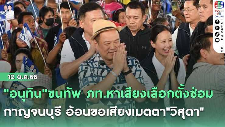 "อนุทิน"ขนทัพ ภท.หาเสียงเลือกตั้งซ่อมกาญจนบุรี อ้อนขอเสียงเมตตา"วิสุดา"รับใช้ไม่ขาดช่วง ย้ํายุบสภา ม.ค.ขอให้เลือกอีกรอบ ยันเปิดด่านจบแล้วไม่งั้นถูกกระทืบตาย