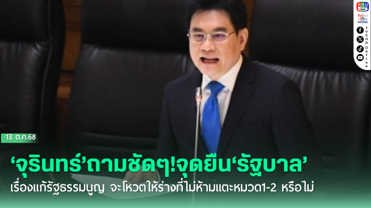 ‘จุรินทร์’ถามชัดๆ!จุดยืน‘รัฐบาล’เรื่องแก้รัฐธรรมนูญ จะโหวตให้ร่างที่ไม่ห้ามแตะหมวด1-2 หรือไม่